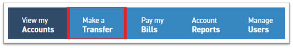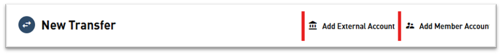 Once the external account has been verified and connected, select Make a Transfer, then choose the From account and the To account. Your external financial institution will now show up in each list under External Accounts.